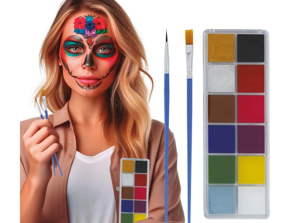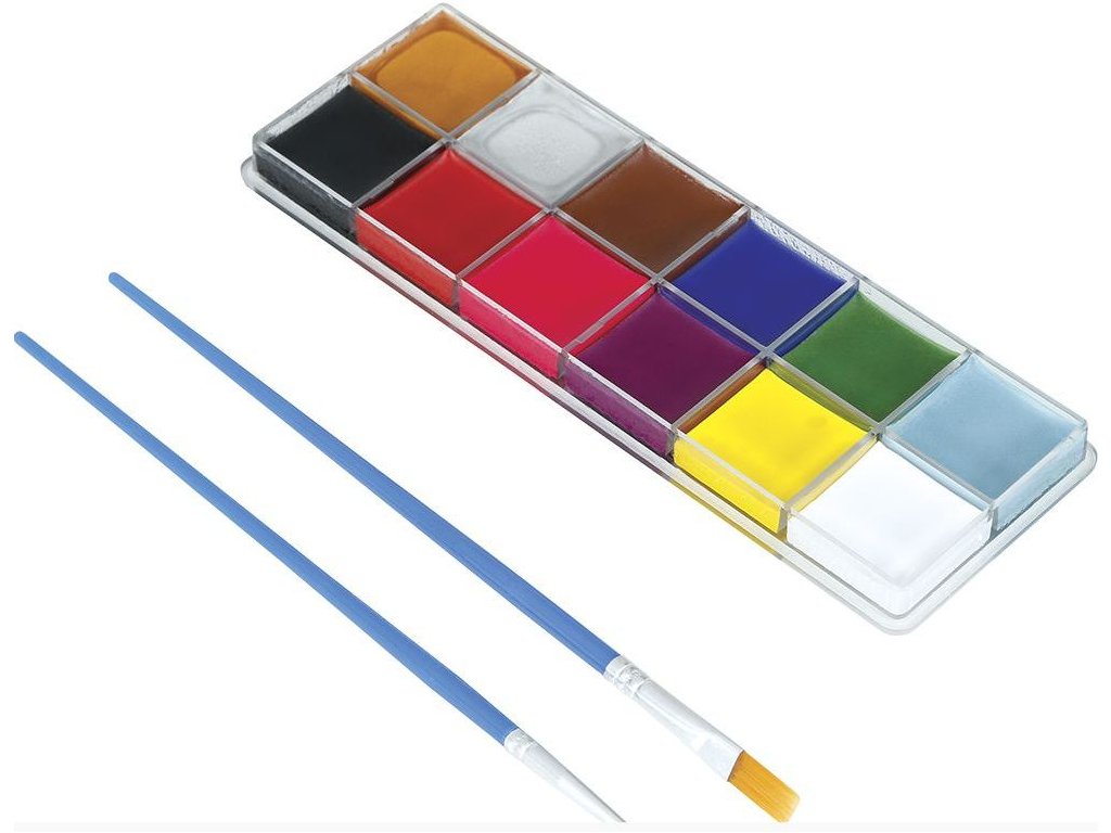 Barvy na obličej - 12 barev s dvěma štětečky