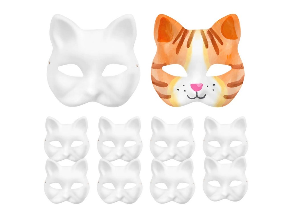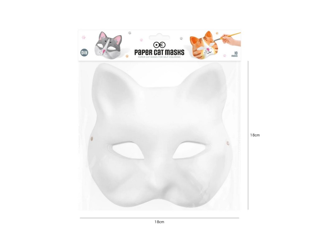 Bílá kartonová maska je určená k domalování a zdobení. Maska má lehce hrubý povrch a můžete na ni malovat téměř vším, co vás napadne (pastelky, vodovky, fixy,..). Můžete ji také ponechat bílou a použít jako doplněk k tajemným převlekům. Maska je vhodná pro děti i dospělé. Nasazuje se pomocí gumičky.