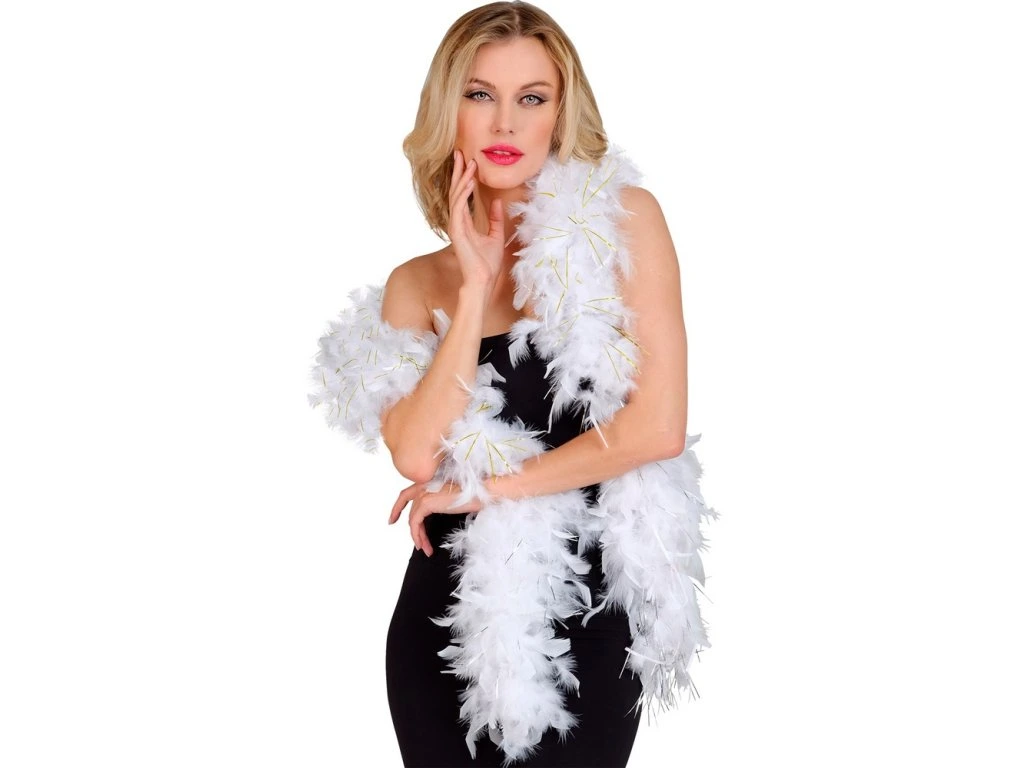 Boa bílé vhodné ke karnevalovému kostým z 20. a 30. let, kdy se tančíval charleston bylo boa velký doplňkem.