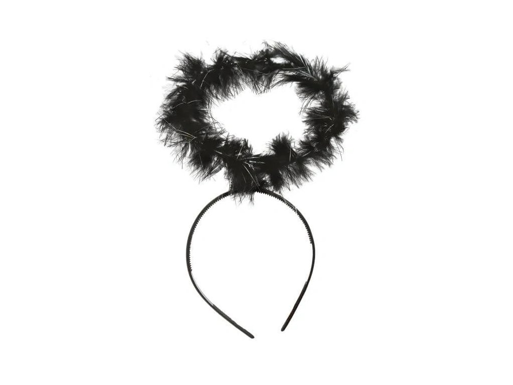 Černá svatozář se stříbrnými vlákny na čelence pro padlého anděla.