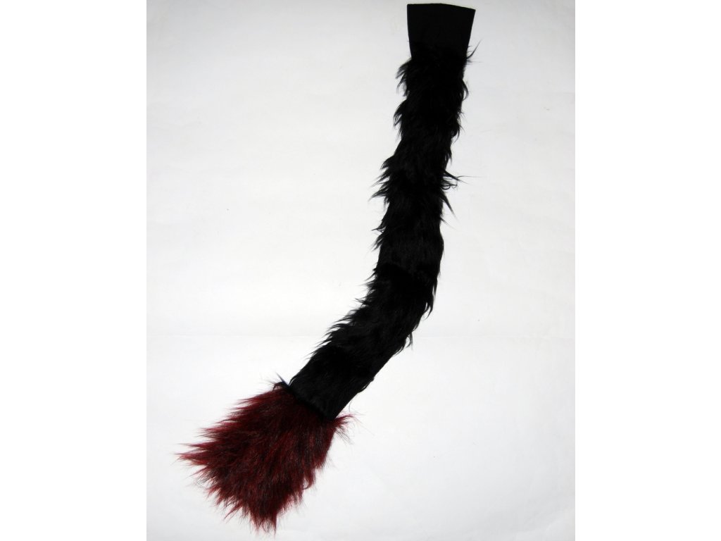 Karnevalový doplněk černo-červený ocas dlouhý 70 cm. Na konci ocasu je očko skrz si provlíknete pásek a připevníte si ho ke kalhotám. Vhodný na čerta, vlka, kočku a jiné pohádkové bytosti.
