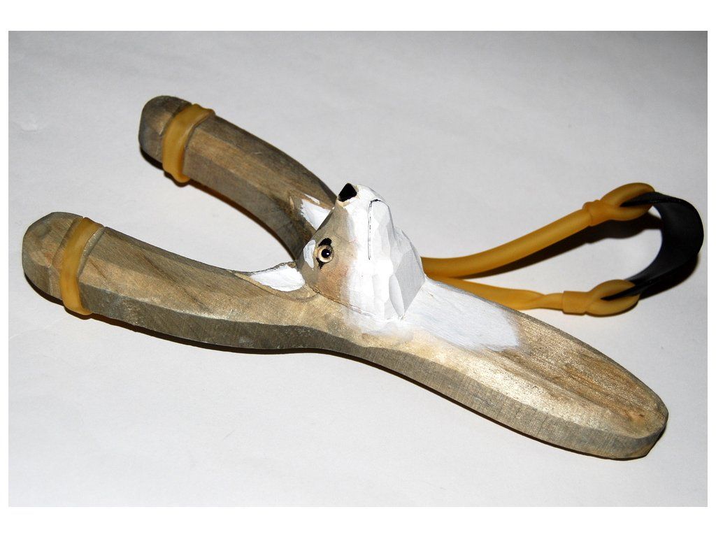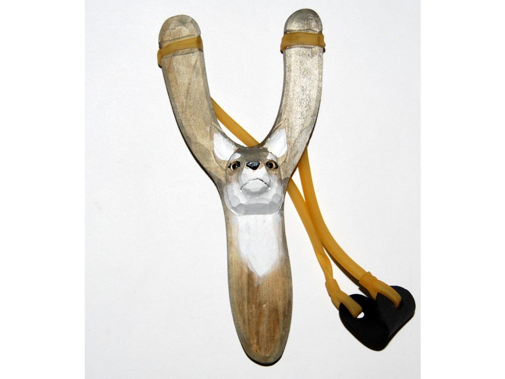 Ručně vyřezávaný prak ze dřeva inspirovaný zvířátky.