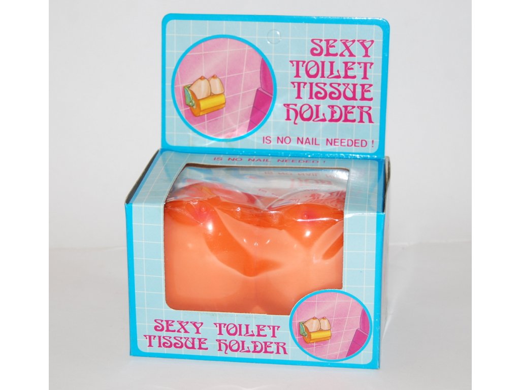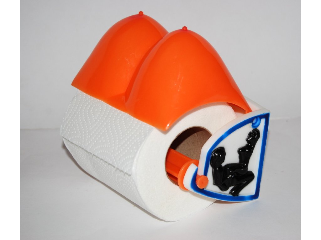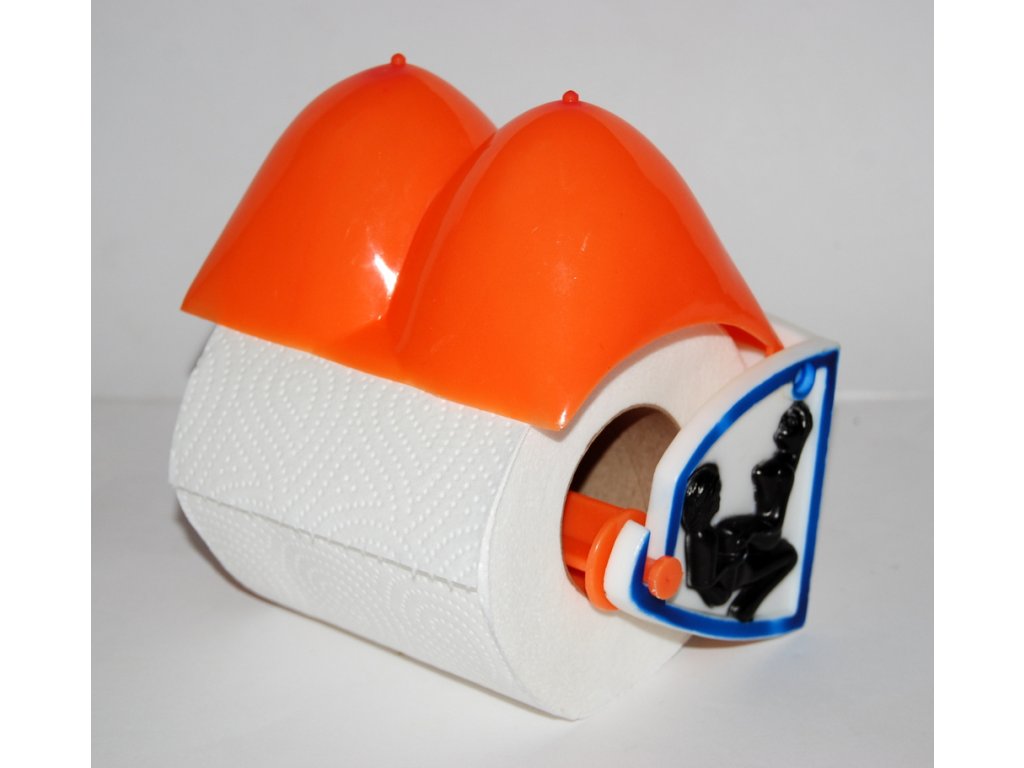 Plastový držák toaletního papíru na WC s prsama je vtipný dárek pro kamaráda, přítele nebo jen tak.