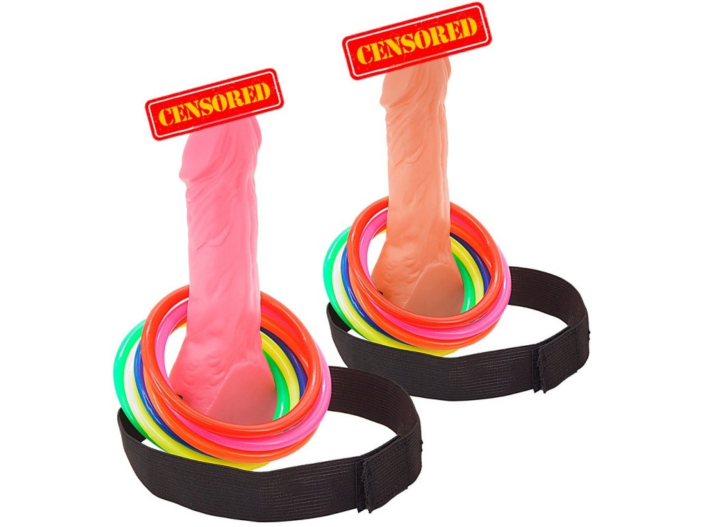 Hra penis s kroužky. Kdo hodí nejvíce kroužků na penis vyhrál.