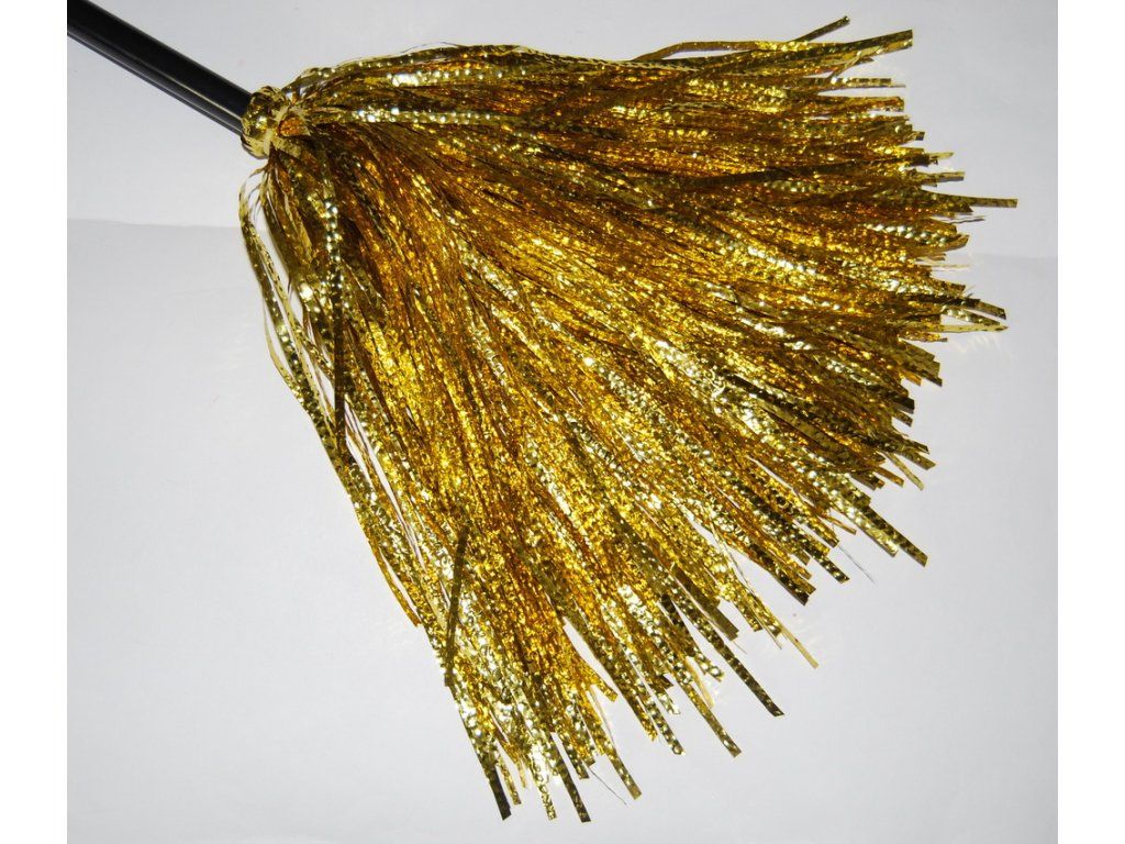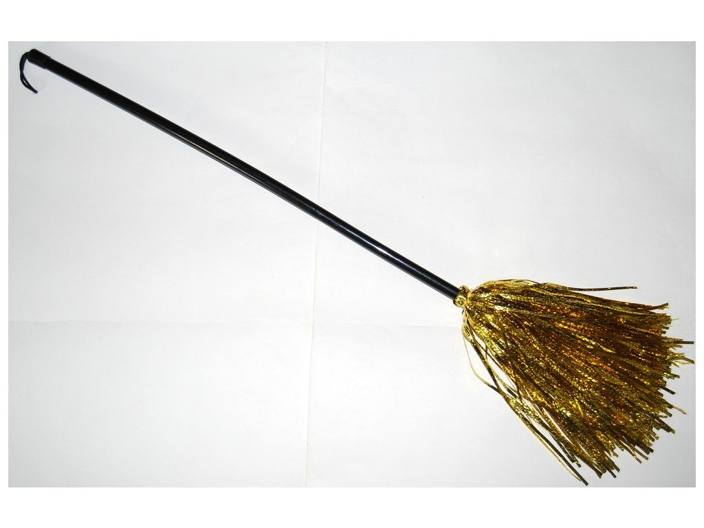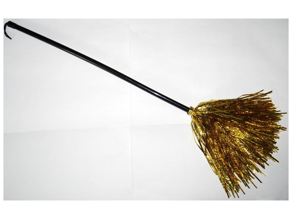 Stylové koště pro malé i velké čarodějnice je skvělým doplňkem na karneval! Koště má krásné zlaté třásně, je dlouhé 90 cm a rukojeť je vyrobena z PVC.