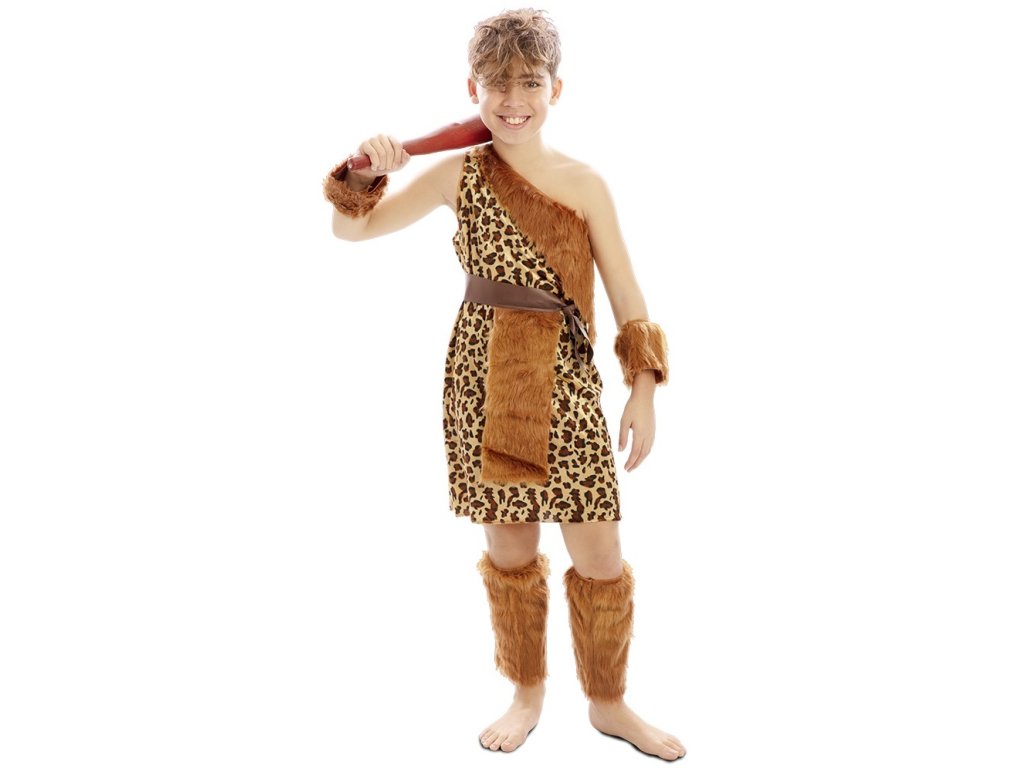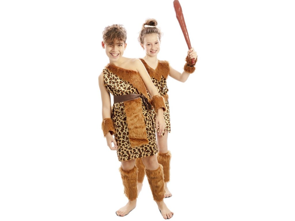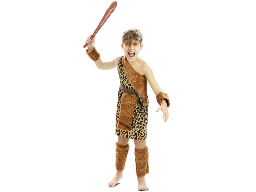 - Kostým pračlověk klučičí obsahuje - Oblek, opasek, náramky na ruce a náramky na kotníky.