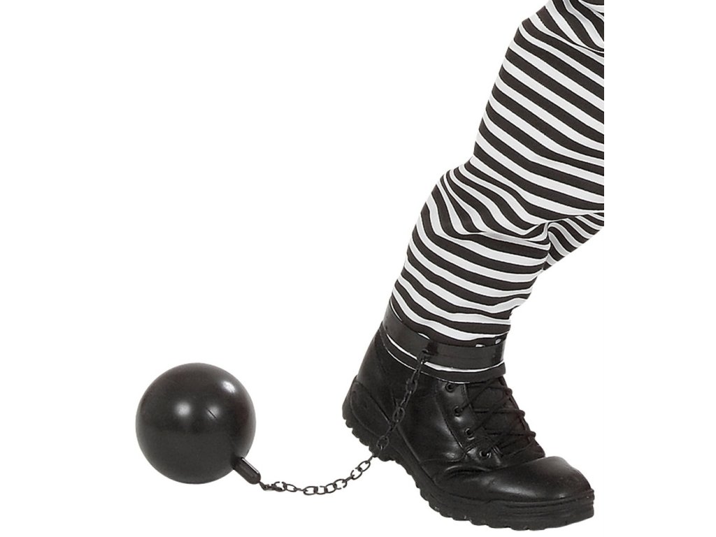 Svatební koule s řetězem. Chystáte se na párty a chcete pobavit své spoluvězně? Pak je tento jednoduchý doplněk vhodný právě pro Vás. K vytvoření dojmu, že jste uprchlý trestanec, vězeň, bohatě postačí koule s řetězem. Připevněte si plastovou kouli na nohu, třeba k obleku nebo kostýmu trestance. Můžete se tvářit jako svatoušek, koule s řetězem Vaši minulost stejně prozradí. Koule s řetězem pro trestance se k noze připevňuje pomocí gumového pásku.