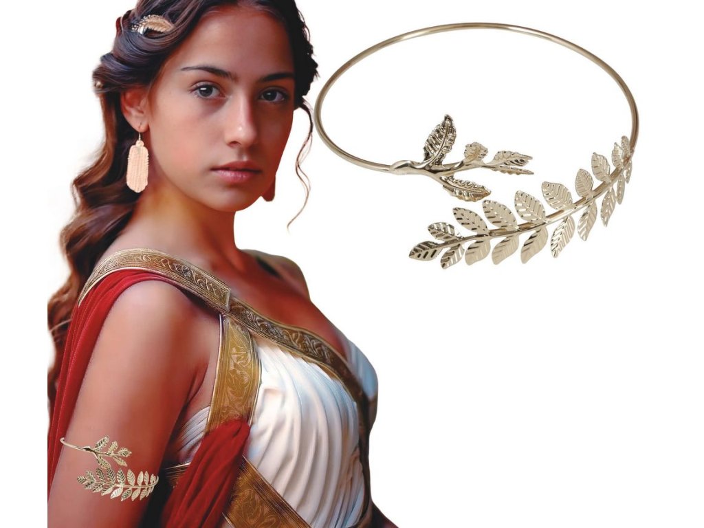 Kovový náramek s vavřínovým listem zlatý, nezbytný doplněk pro všechny bohy či bohyně.
