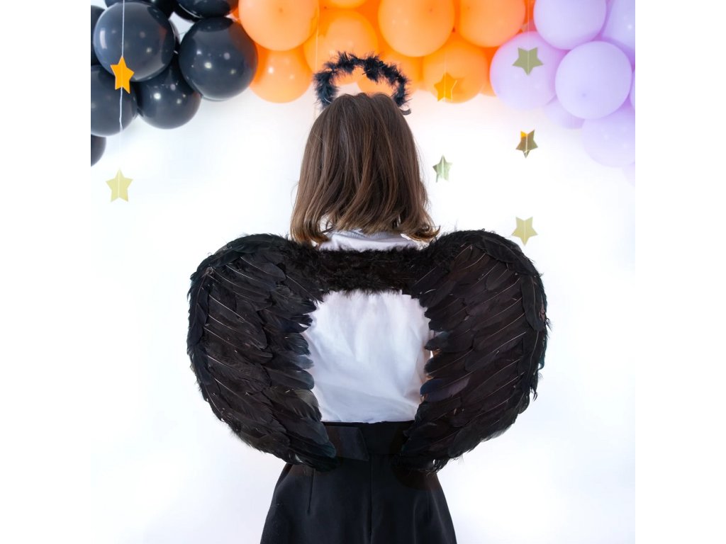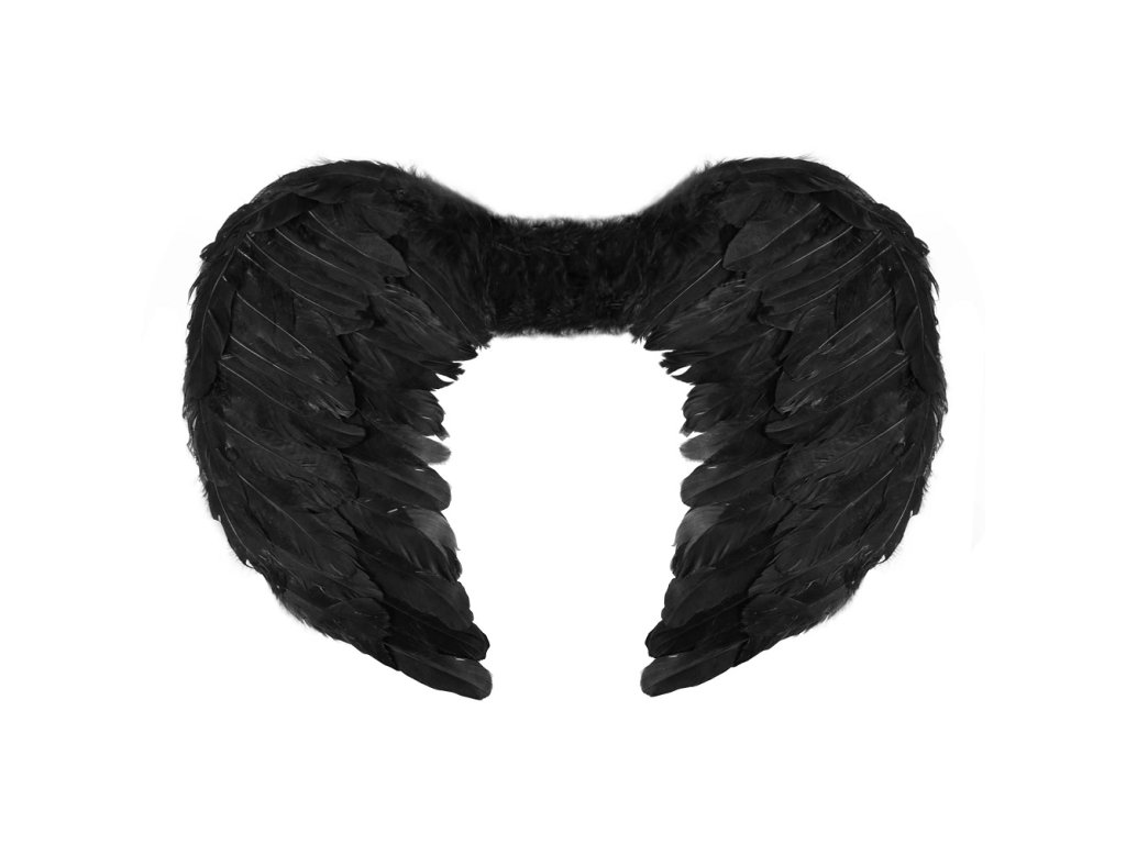 Černá péřová křídla pro černého anděla, vránu, nebo havrana, nebo na halloweenskou párty. Na záda se připevňují pomocí gumiček, jako batoh.