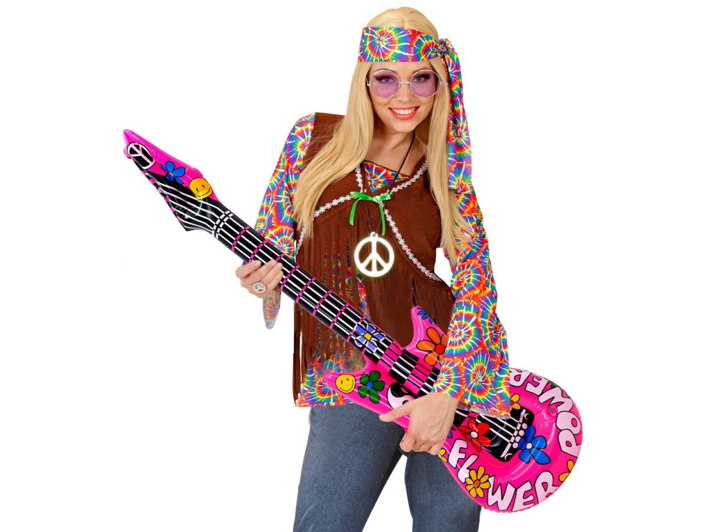 Nafukovací kytara pro rockery, hippie , můžete vzít k vodě na párty, karneval, masopust nebo tématické akce.