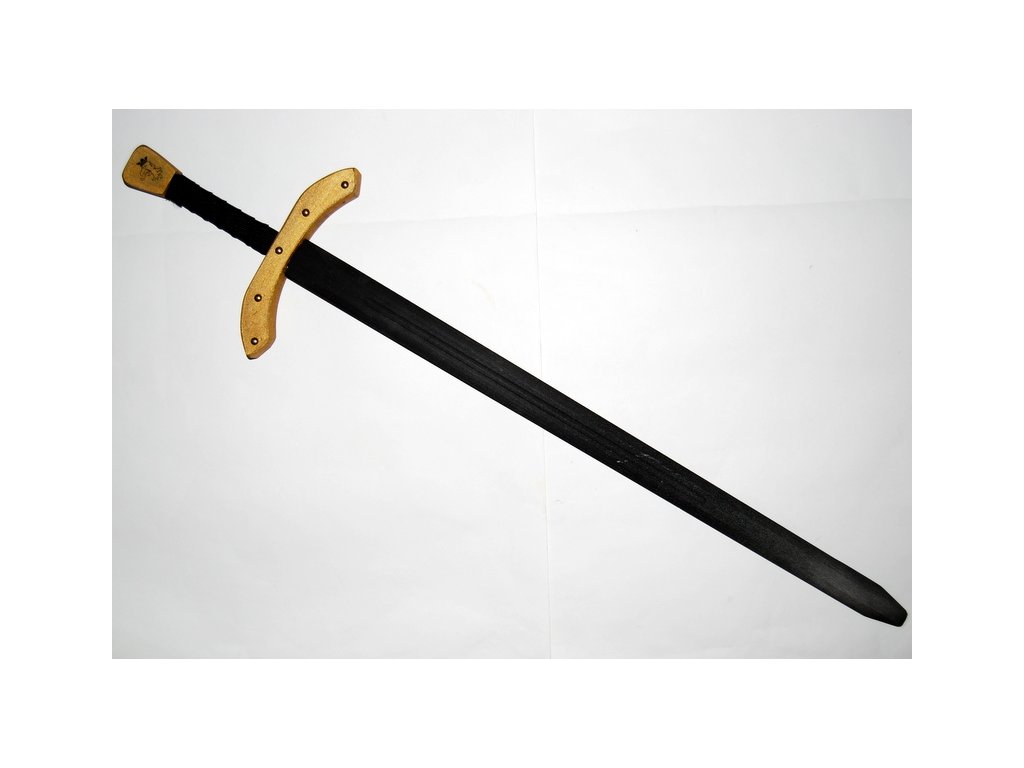 Luxusní dřevěný meč s černo-stříbrnou čepelí a černou záštitou a hlavicí. Omotávka je z různých druhů kůže. Hlavice je zdobená stříbrnou hlavou orla. Vhodný do koženého závěsníku, pro rytíře, prince, krále. Délka 95cm.