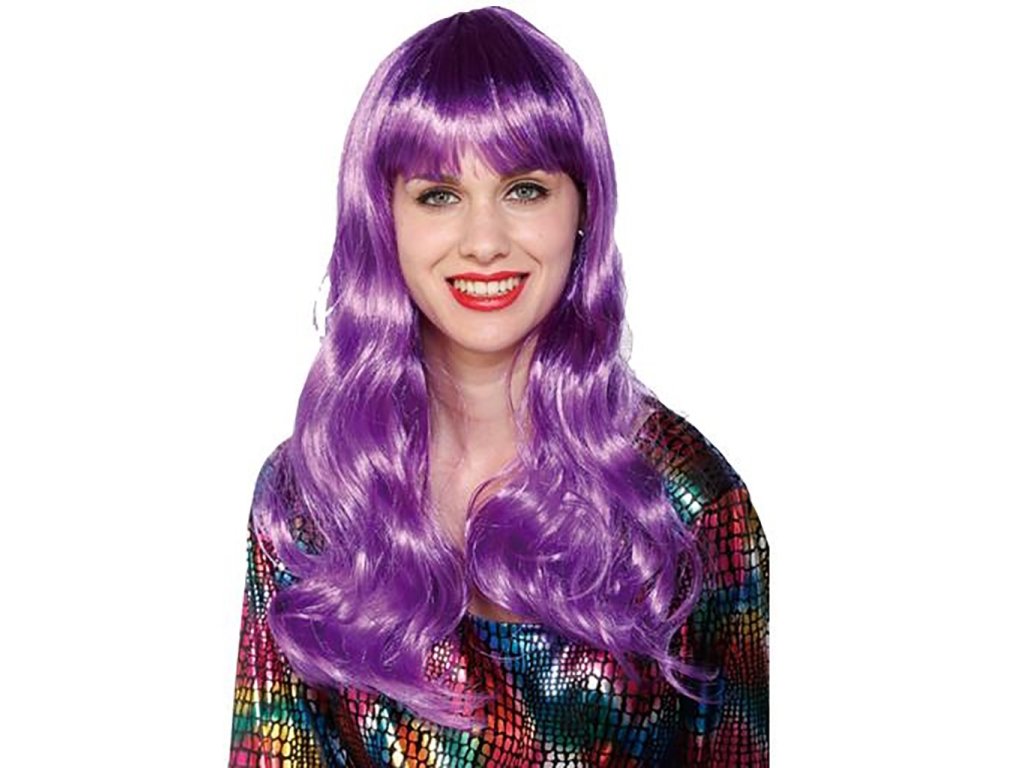 Karnevalová, fialová, dlouhá paruka s ofinou, vhodná na jakoukoli párty, večírek.