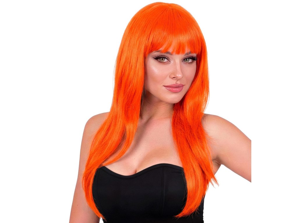 Karnevalová, dlouhá, oranžová paruka s ofinou. Zazáříte na párty, halloweenu, ......