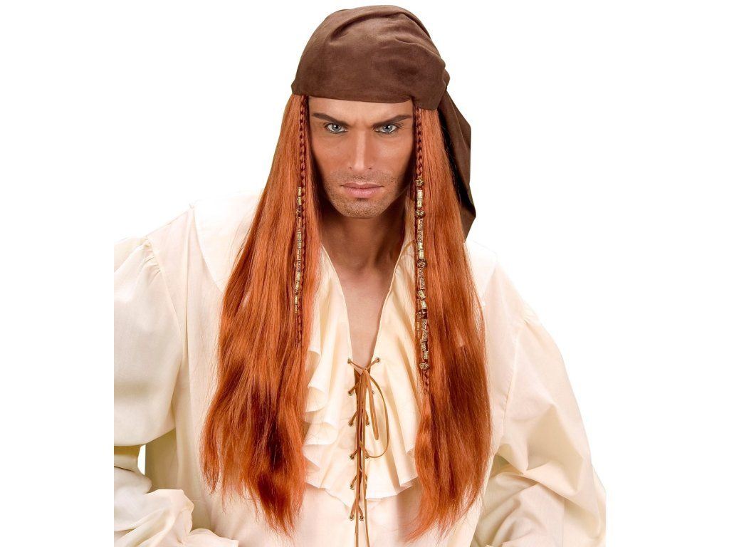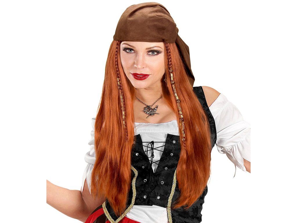 Karnevalová paruka pirát s profesionálními vlasy a korálky. Dá se použít na piráta nebo pirátku.