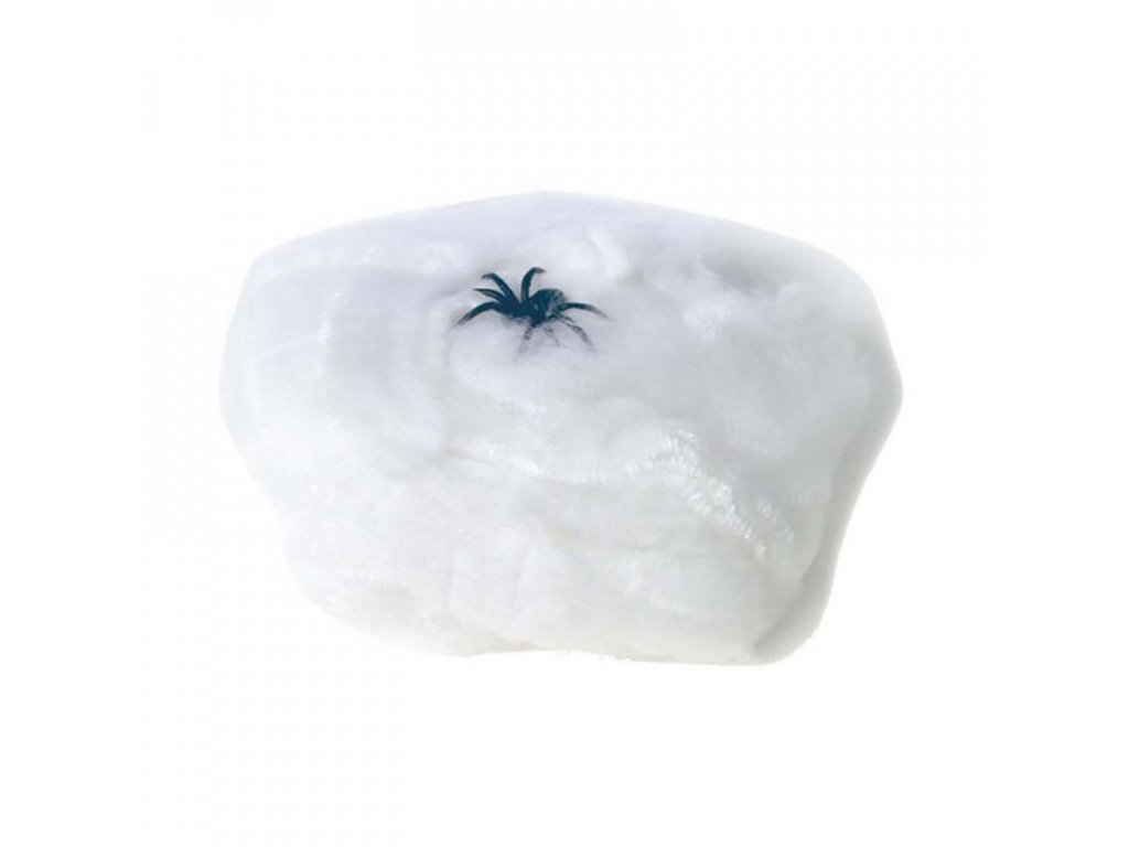 Bílá pavučina o hmotnosti 20g. V balení s černým plastovým pavoukem. Dekorace na Halloween, strašidelnou nebo čarodějnickou párty.