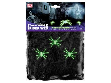 Černá pavučina o hmotnosti 0g, v balení společně s 2 kusy plastových pavouků. Dekorace na halloween, nebo párty pro čarodějnice.