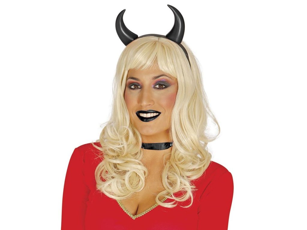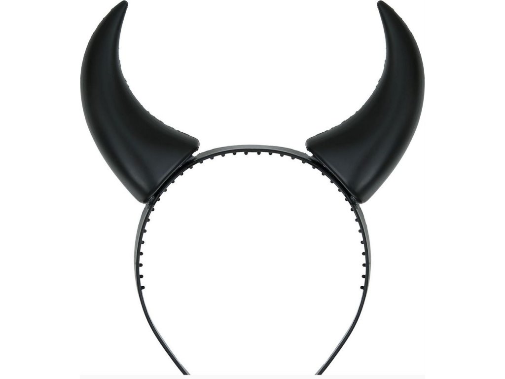 Černé rohy pro čerta nebo čertici, připevněné na čelence.