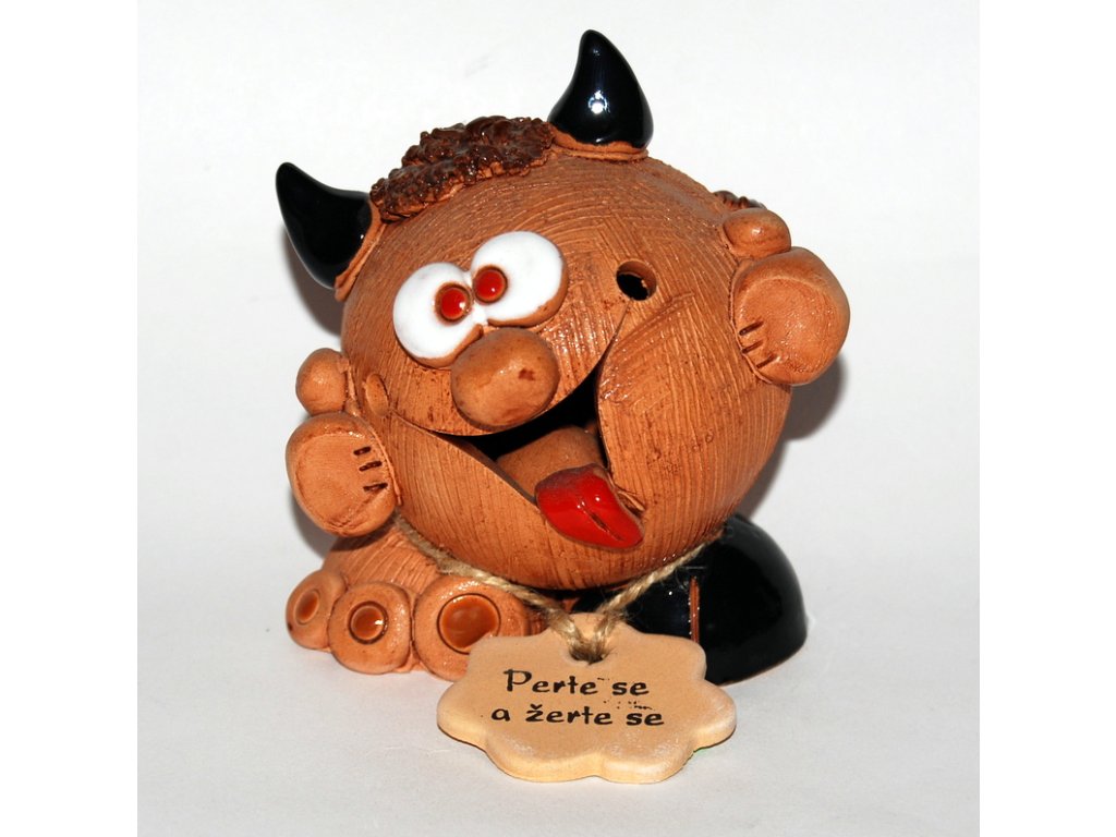 Keramická rolnička čertík.