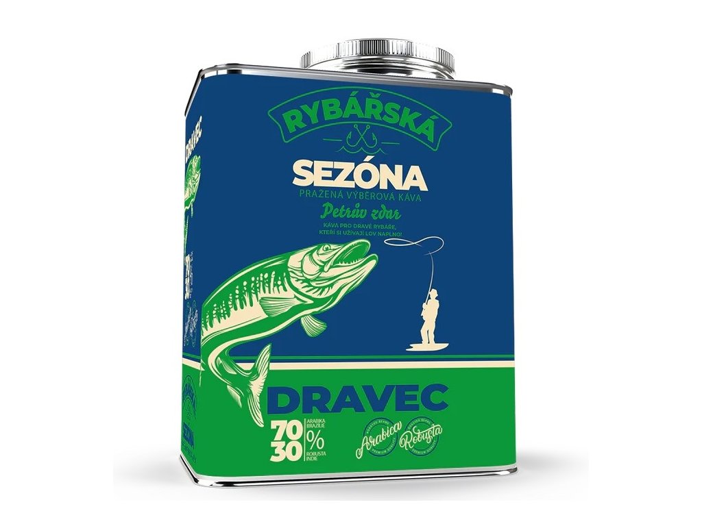 - Zrnková káva s rybářským motivem v plechovce - 250g zrnkové kávy