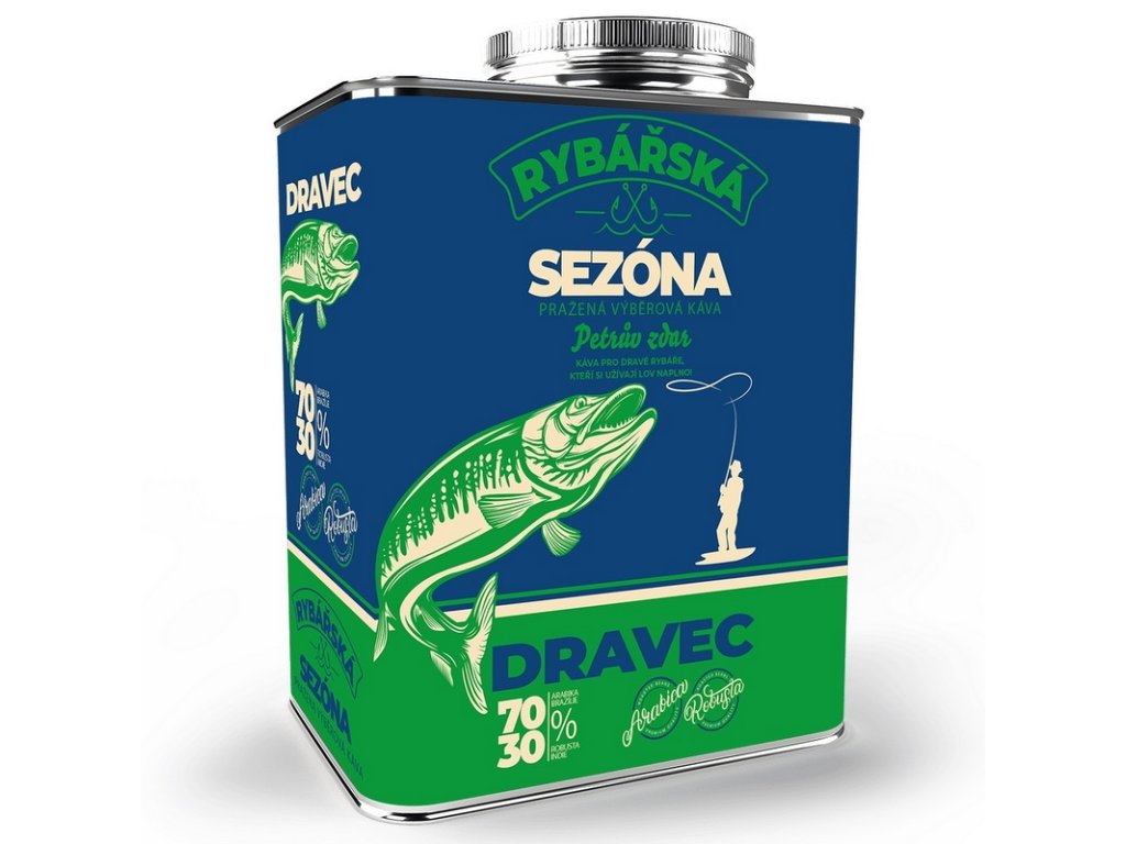 - Zrnková káva s rybářským motivem v plechovce - 150g zrnkové kávy