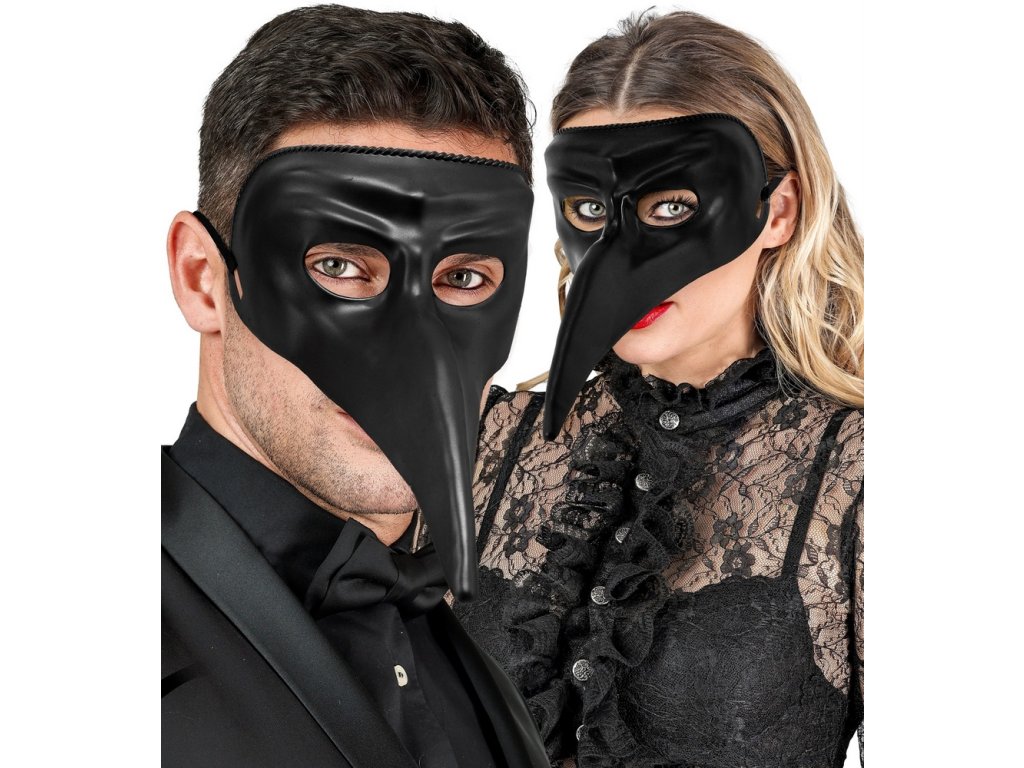 Škraboška s dlouhým nosem - černá