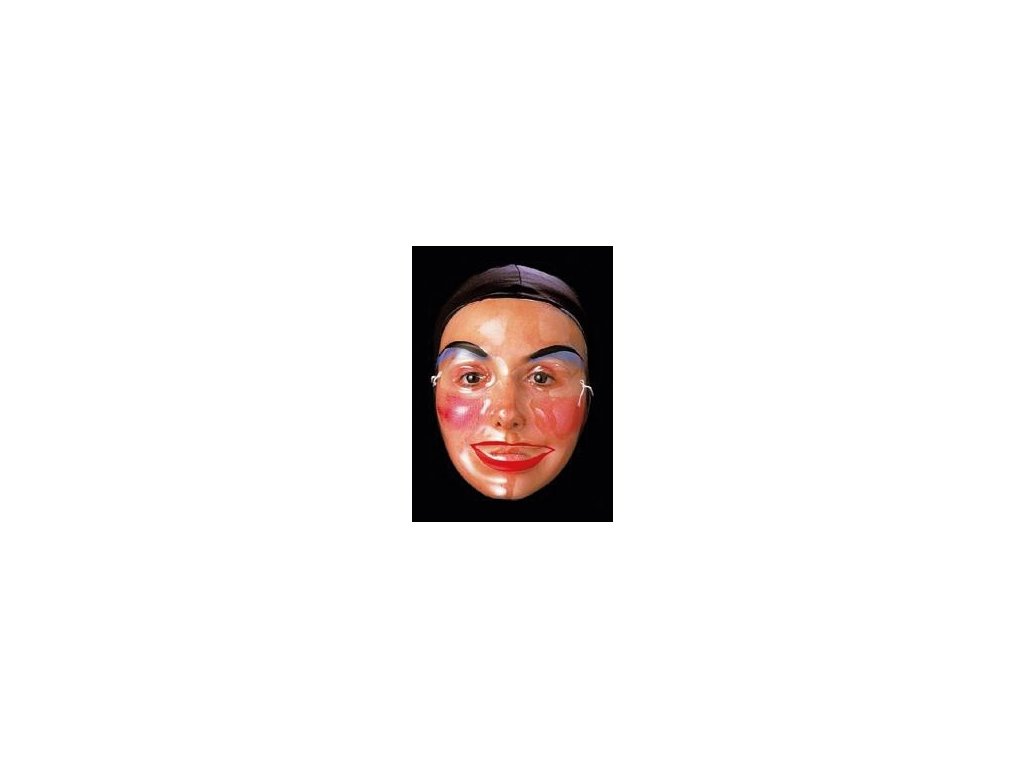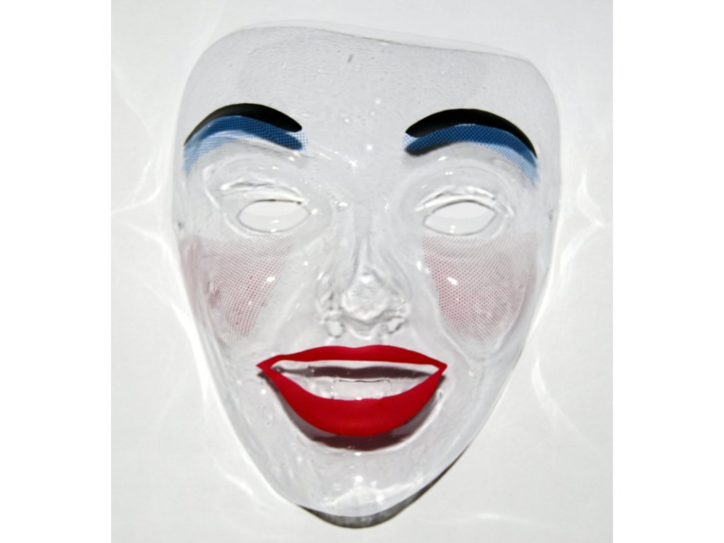Průhledná plastová maska s otvory na oči, pusu a nos. Otvory můžete zvětšit pomocí nůžek. Maska dokonale změní každý obličej.