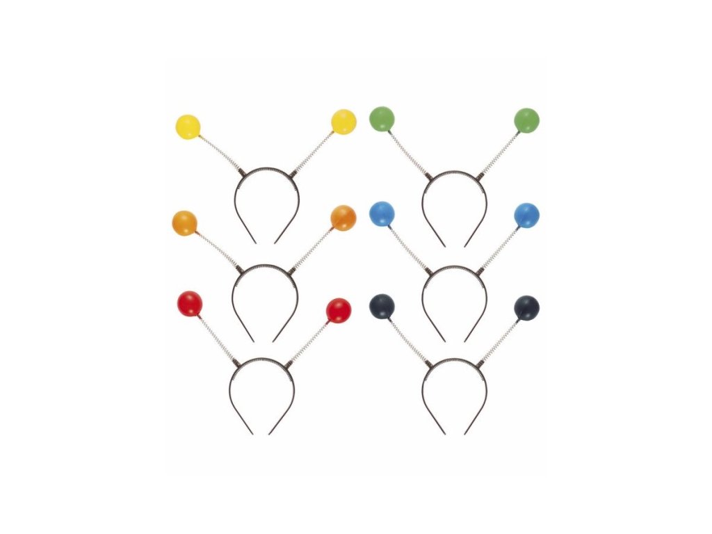 Tykadla na pružině drží na hlavě pomocí pružné spony, na které jsou připevněny pružinky a na nich jsou barevné kuličky. Na dospělou i dětskou hlavu.