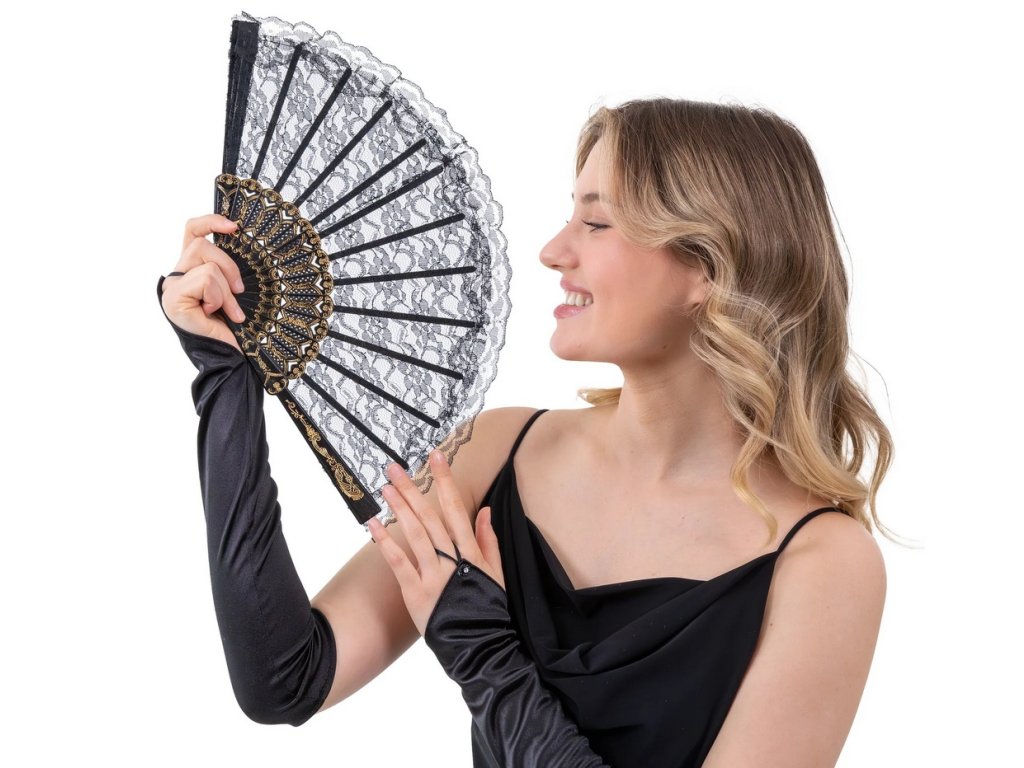 Vějíř černý krajkový