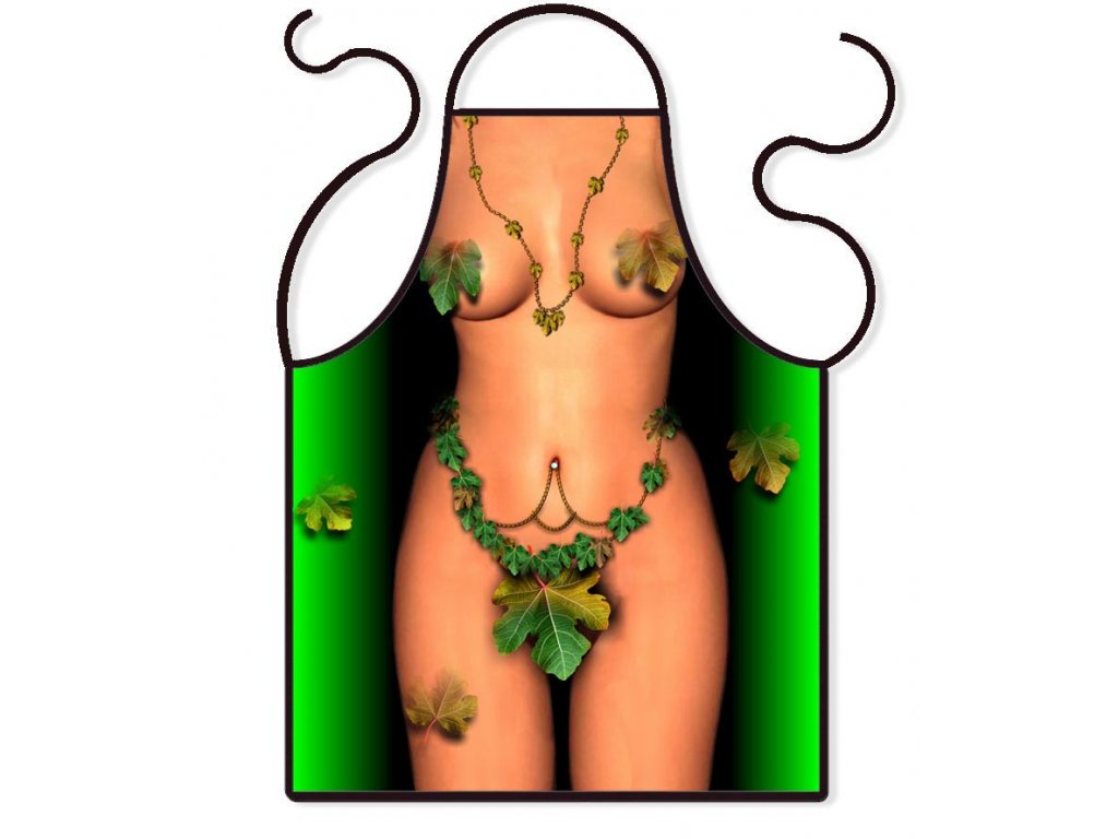 Žertovná kuchařská zástěra s obrázkem ženy s listím je vtipný a zároveň praktický dárek pro ženu kuchařku. Je to humorná mírně erotická zástěra kterou potěšíte manželku, milenku nebo přítelkyni. Zástěra je od českého dodavatele.